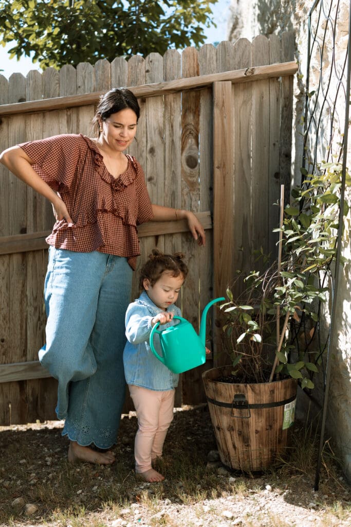 I recommend choosing activities based on your kid’s age and current obsessions, or activities you know they love now but will outgrow. You can also choose activities based on the season. For example, eating watermelon outside after playing with sidewalk chalk is perfect for a summer at-home photo session. Decorating cookies is a perfect winter-time activity.