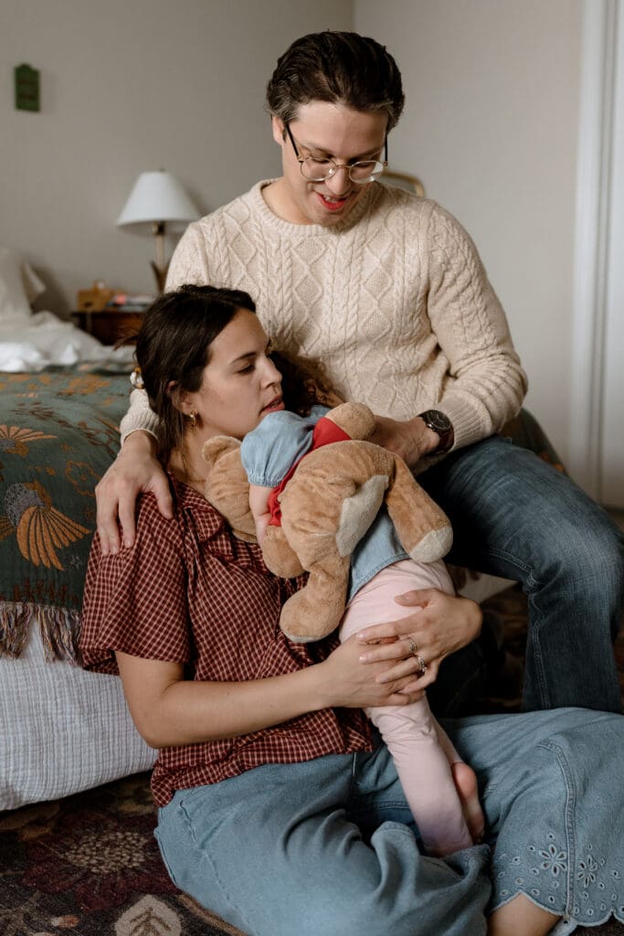 Most in-home family photo sessions include activities. We do this so that your kids don’t get bored with taking snuggly photos, start pulling out all of their toys, or insist on turning on their favorite TV show.